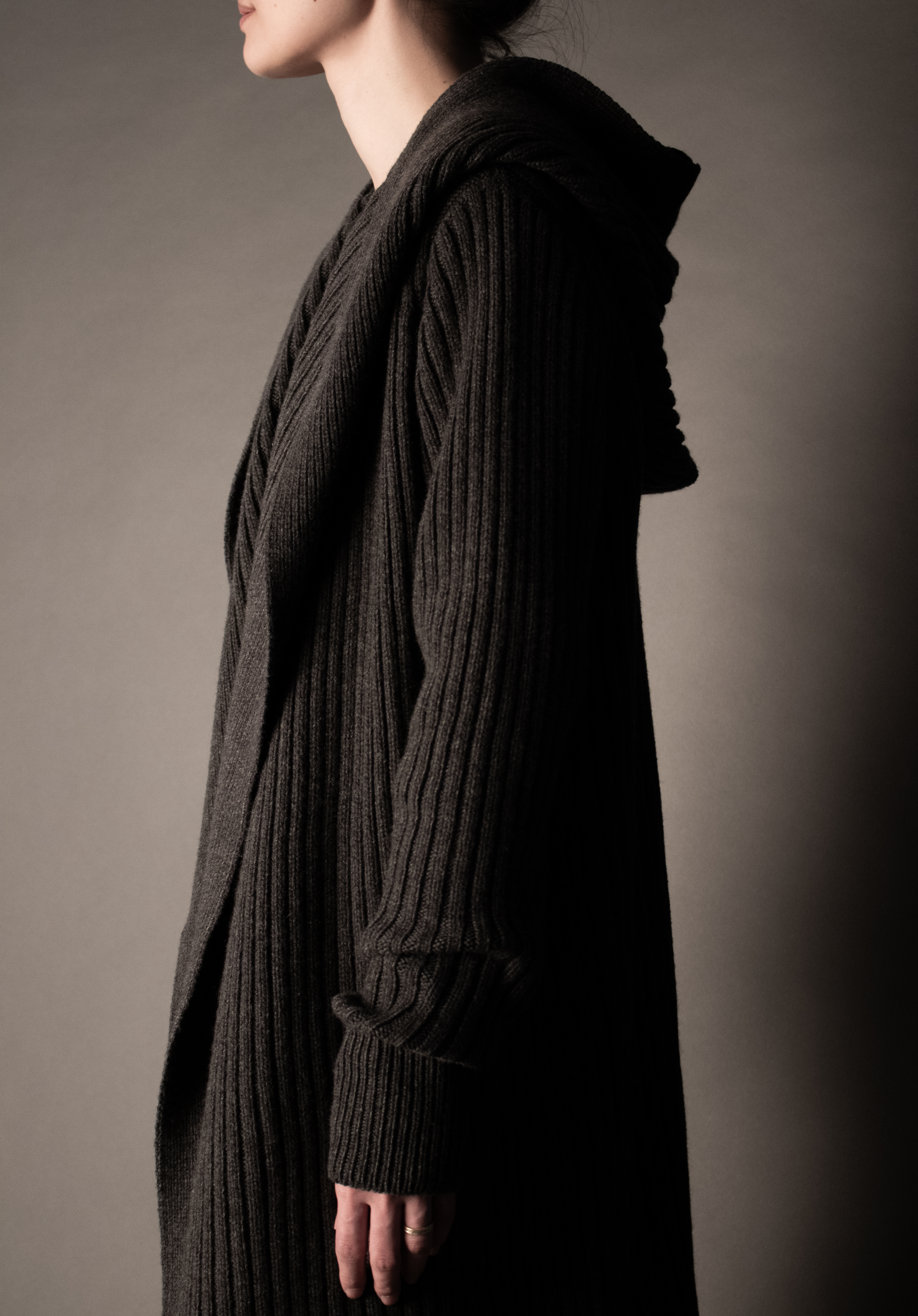 Hooded Ribbing Open Coat